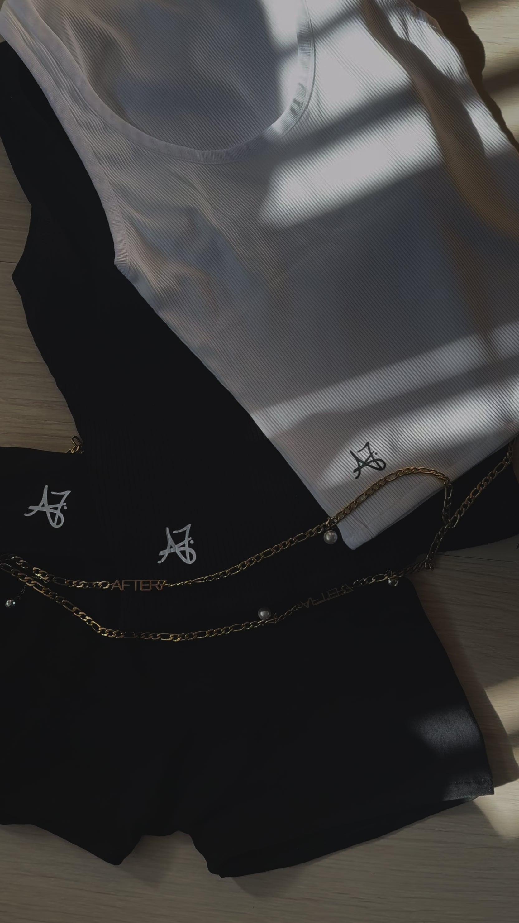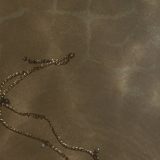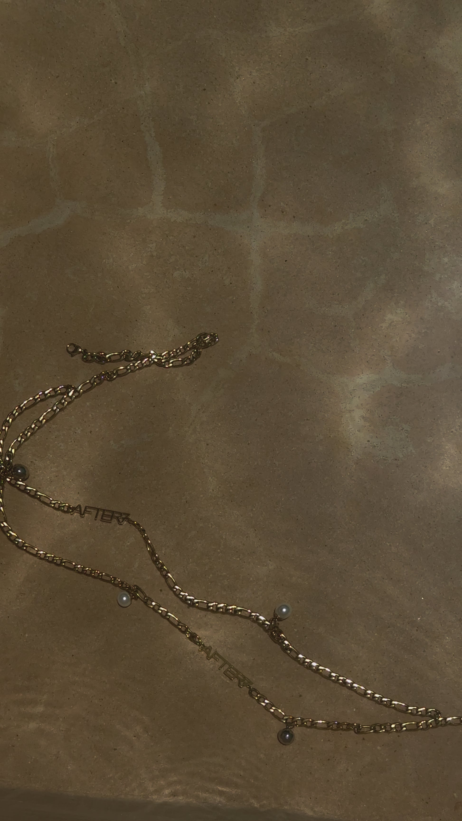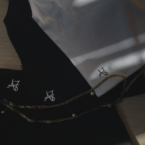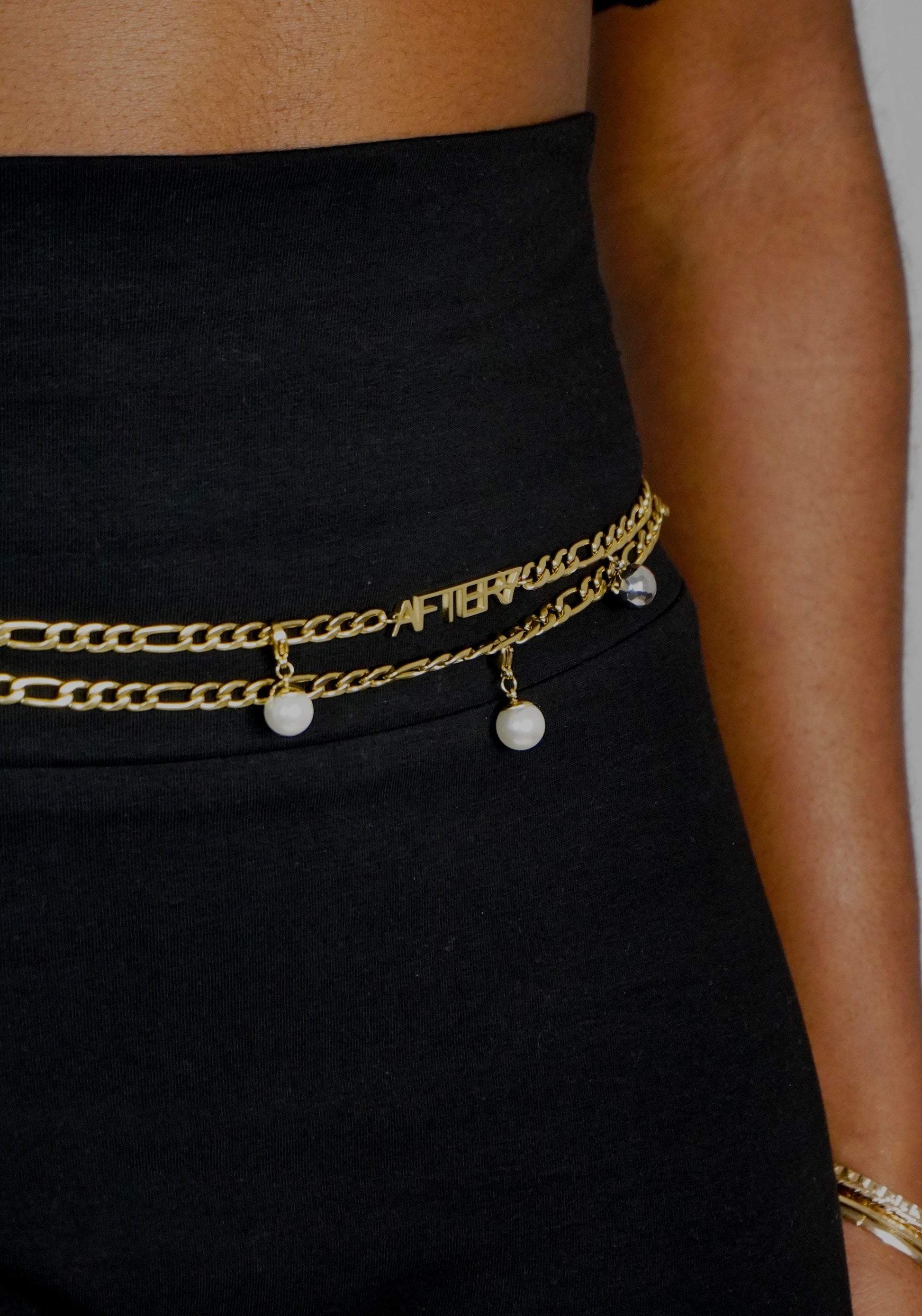 The perfect basic with a twist. The AFTER7 bellychains are made to last, crafted from stainless steel and finished with a 14K gold plating. A double-layered design featuring the AFTER7 logo, our iconic disco ball, and adjustable pearls. This piece is all about versatility. Adjust the length and the pearls to your liking to give these perfect basics a twist for every occasion. An iconic staple, made with an eye for detail.